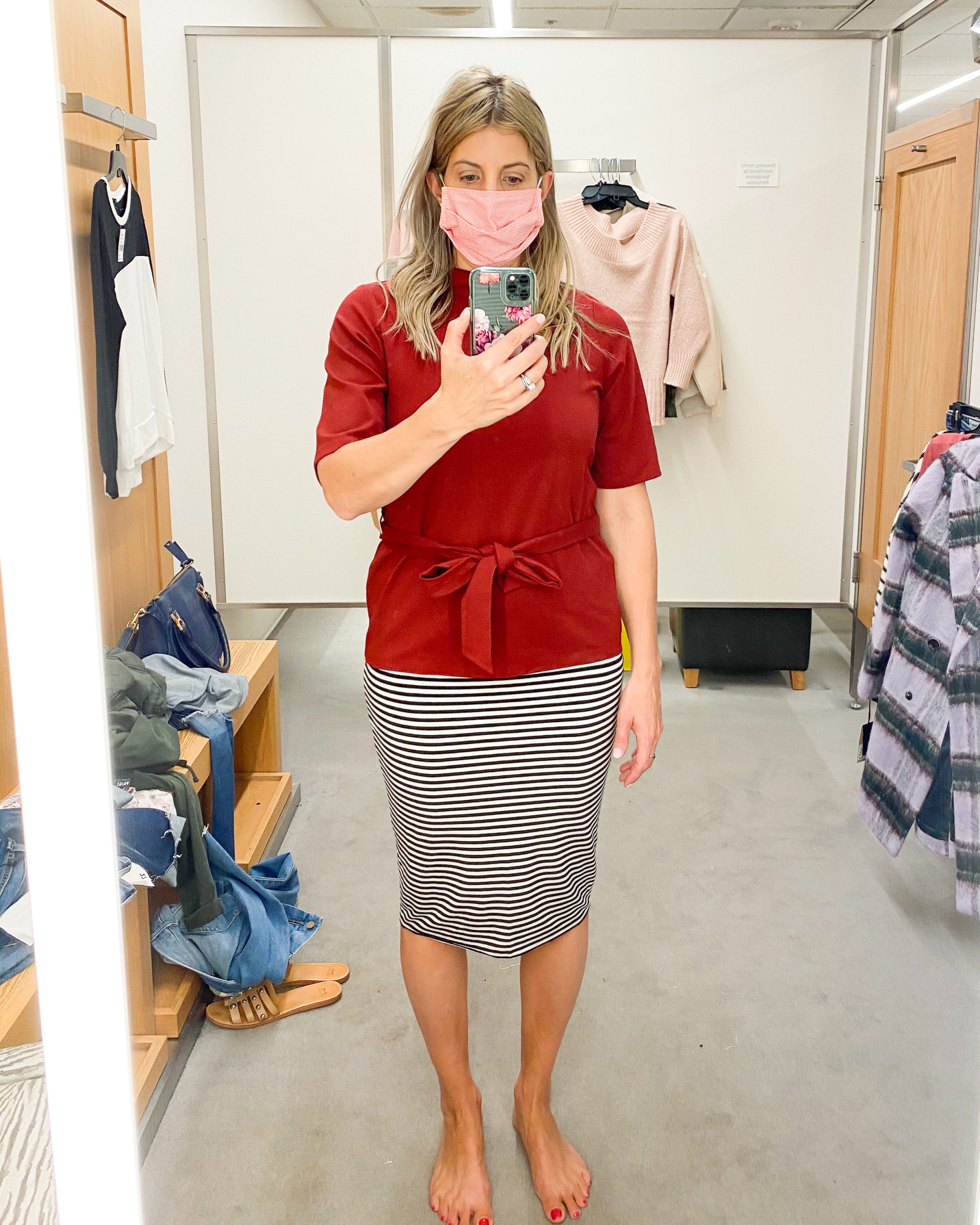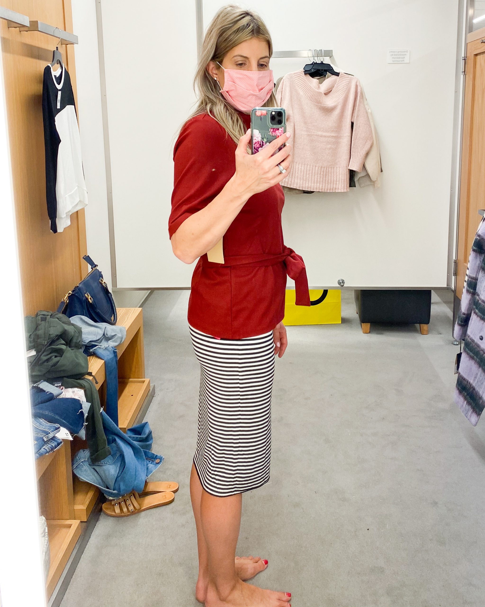 The last time I set foot in Nordstrom was March 2nd for my friend’s birthday lunch (and a little shopping of course!). After more than five months, I was so thrilled to shop the NSale in person on Friday. Try on videos are saved in the NSale highlights on my insta account. Warning: I may have gone a little overboard. As I said in a recent post with my top picks, the entire sale can be previewed digitally. See something you like before you can shop? Add it to your wishlist and come back for it when your day arrives. Without further adieu, here are my 2020 Nordstrom Anniversary Sale dressing room selfies.